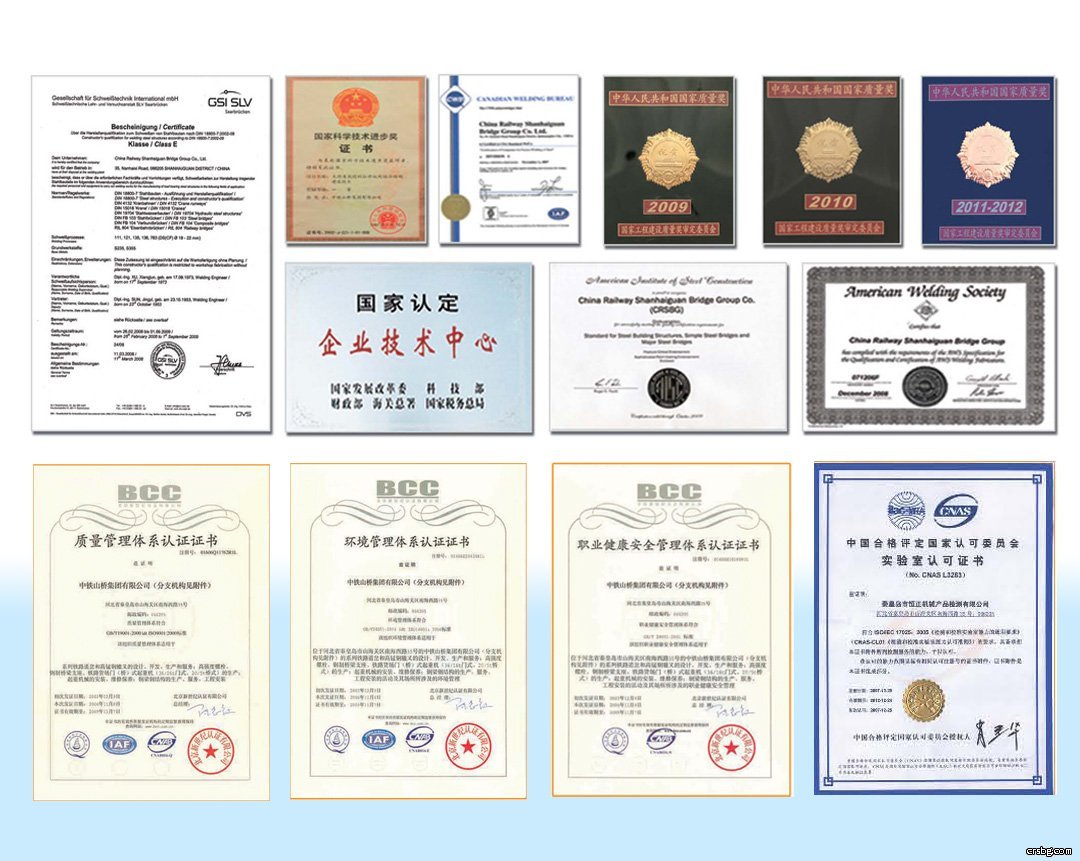 中鐵山橋被列為國家認定企業(yè)技術(shù)中心、中國鐵道器材研究發(fā)展基地,建有博士后科研工作站。擁有鋼結(jié)構(gòu)工程專業(yè)承包一級資質(zhì)、鋼結(jié)構(gòu)制造特級資質(zhì)和建筑行業(yè)總承包二級資質(zhì)。通過了ISO9001質(zhì)量體系認證、ISO14001環(huán)境管理體系認證、GB/T28001職業(yè)健康安全管理體系認證、英國UKAS認證、美國鋼結(jié)構(gòu)認證、AWS焊接認證、AAR道岔認證、歐盟TSI道岔認證、德國焊接認證、加拿大焊接認證和北歐鐵路合格供應(yīng)商認證。