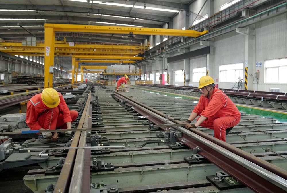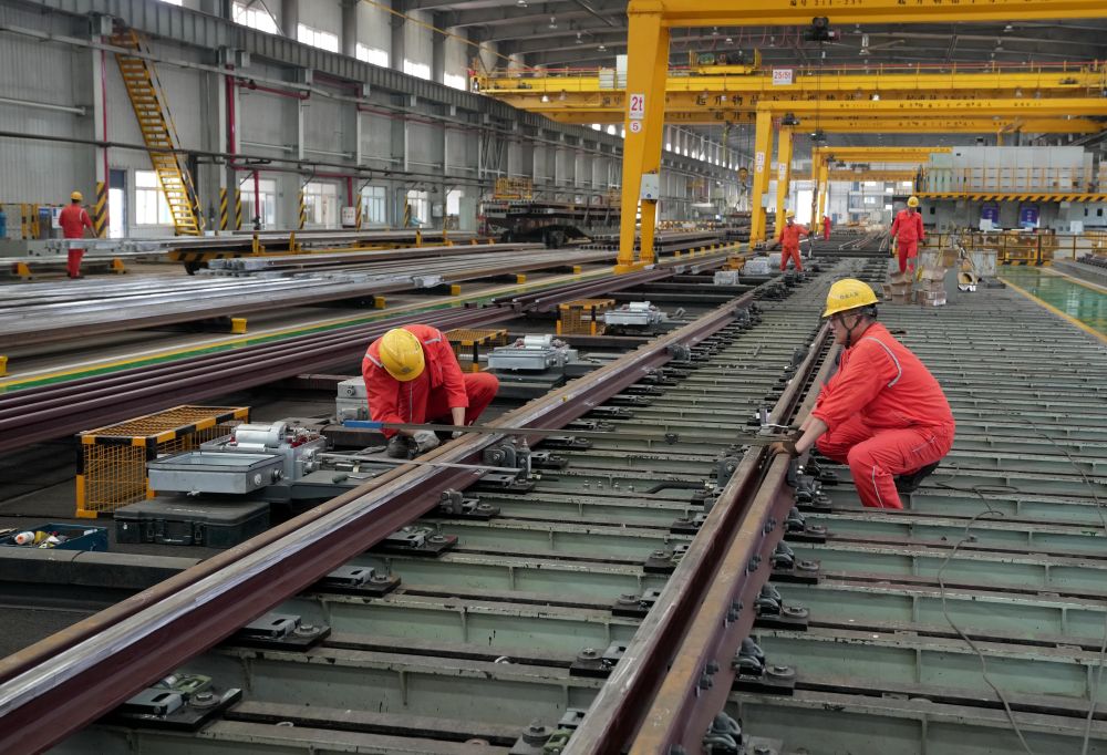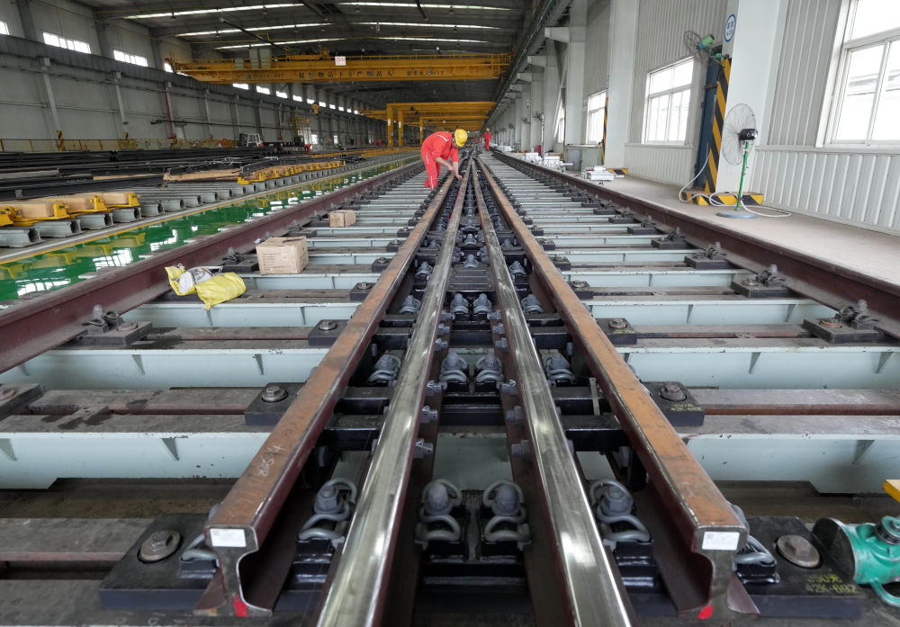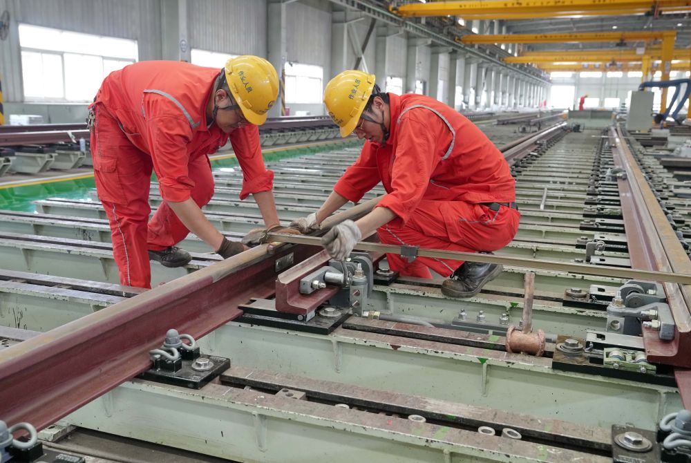 ??↑6月11日,河北省秦皇島市山海關(guān)區(qū)中鐵山橋集團(tuán)有限公司的工人在道岔生產(chǎn)車間工作。 近日,隨著國內(nèi)一些重要鐵路及地鐵項(xiàng)目有序推進(jìn),承接鐵路道岔生產(chǎn)任務(wù)的河北省秦皇島市山海關(guān)區(qū)中鐵山橋集團(tuán)有限公司生產(chǎn)車間內(nèi)一派繁忙,工人們正保質(zhì)保量加緊生產(chǎn),助力中國鐵路交通建設(shè)。中鐵山橋始創(chuàng)于1894年,生產(chǎn)的道岔產(chǎn)品遠(yuǎn)銷30多個(gè)國家和地區(qū)。 新華社記者 楊世堯 攝